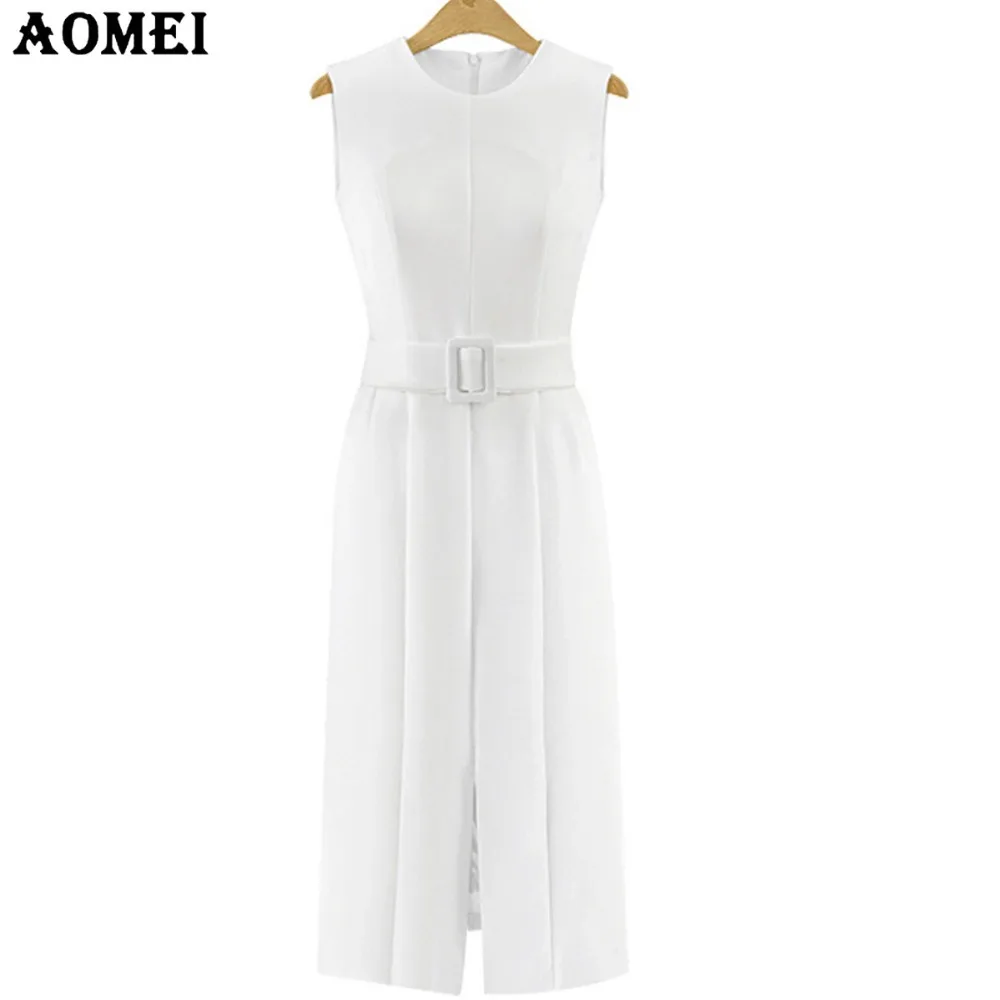 Donne Casual Elegante Estate Abiti Da Ufficio Con Cintura In Vita Signore Split Summer Vestito Estivo Abiti Bianco Nero Beige Dress Robe Summer Office Dress Office Dressdress With Aliexpress
